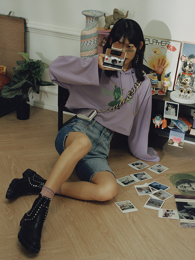 (RIENYRE series) MAXRIENY autumn new pullover short top hooded short sweater
