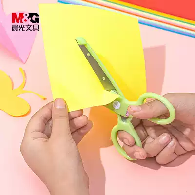 Morning light children scissors safety manual does not hurt hands plastic scissors toy set primary school art lace wave scissors round head art paper cutter children kindergarten baby Special