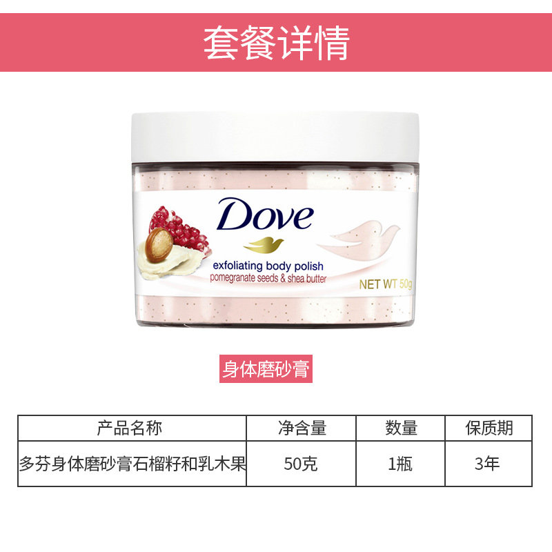dove dove scrub body exfoliating chicken skin tender white black joint ice cream red pomegranate 50g travel suit