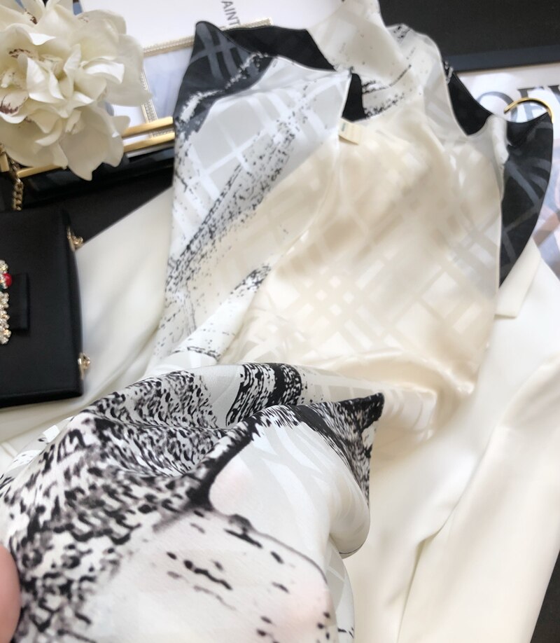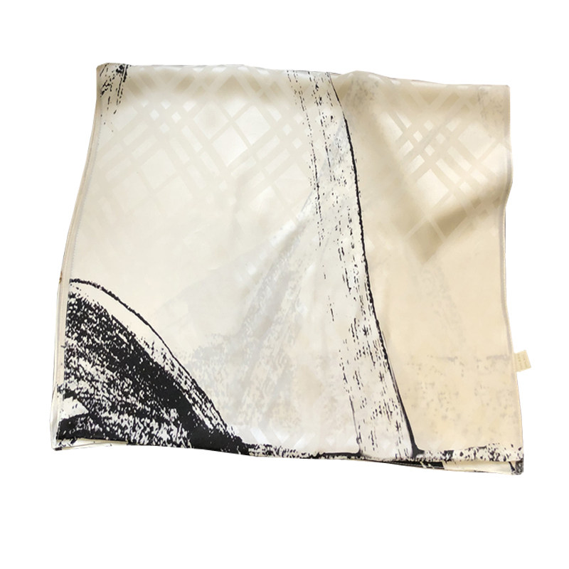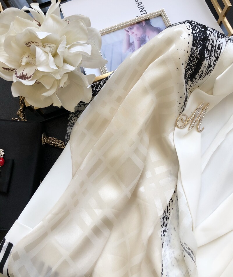 Cognitive Fashion Cream White Real Silk Scarves Women 100 Hitch Spring Autumn Long Version Geometric Dark Veins Jacquard Mulberry Silk Shawl