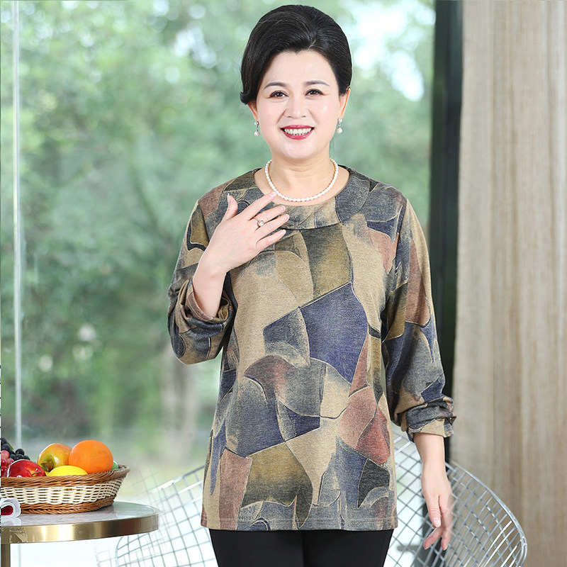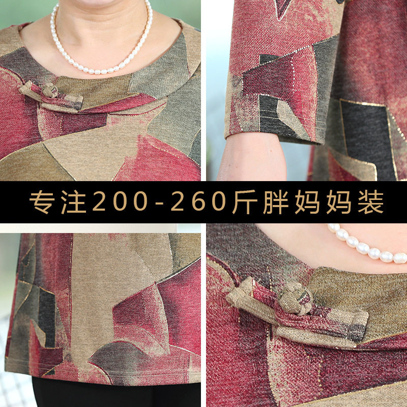 Mid-aged women's clothing early spring jacket T-shirt Gats up overweight Grandmother Long sleeve blouse Mom loaded with spring clothing 200 catty