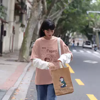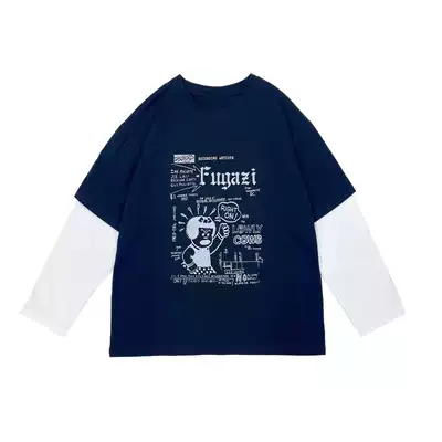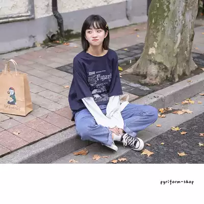 (Spot)Loyal dog Xiaohachi pear-shaped homemade small cartoonist Japanese ins campus stitching long-sleeved T-shirt spring all-match