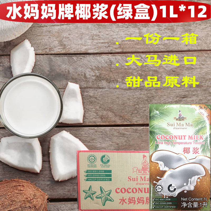 Water Mom Coconut Pulp 1L* 12 boxes Malaysia Imported Coconut Milk Raw Material Simi Dew Milk Tea Sweet whole box