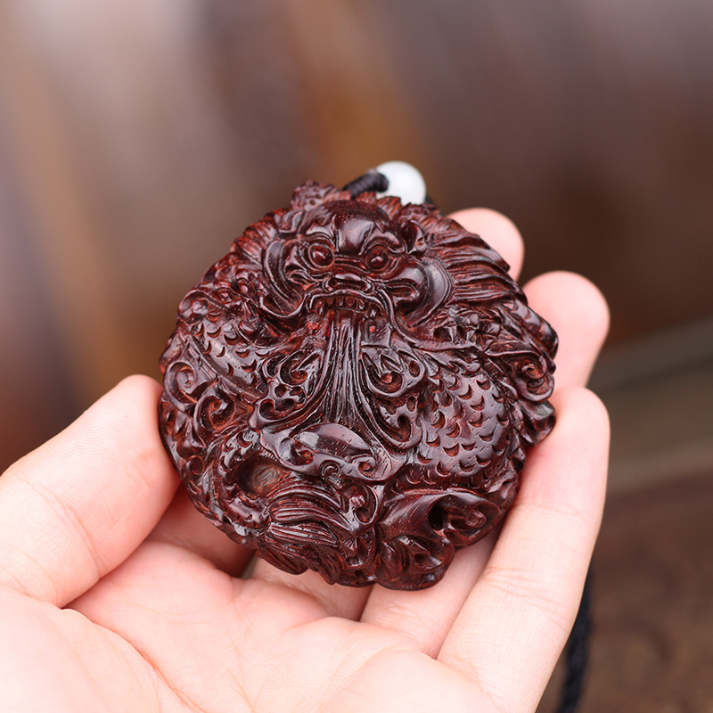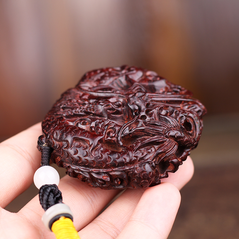 Fu Yunchang Indian small leaves purple sandalwood hand-carved double-sided Xianglong hand piece 12 zodiac dragon pendant put play pieces