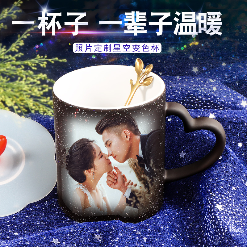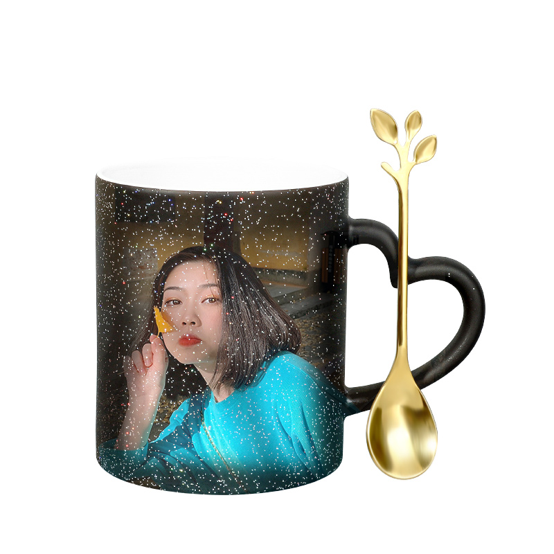 Upgraded starry sky color cup Spoon cup lid gift bag
