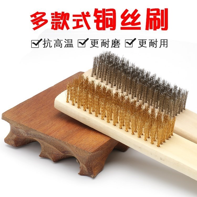 Wooden handle Wenplay wire brush iron stainless steel rust removal and polishing clean copper wire brush industrial pure copper steel brush copper brush