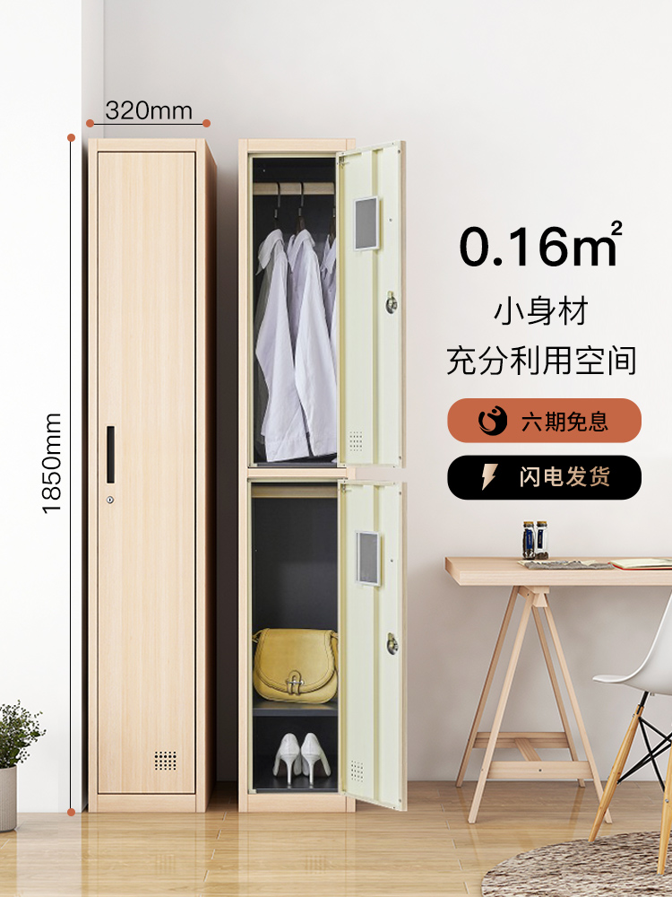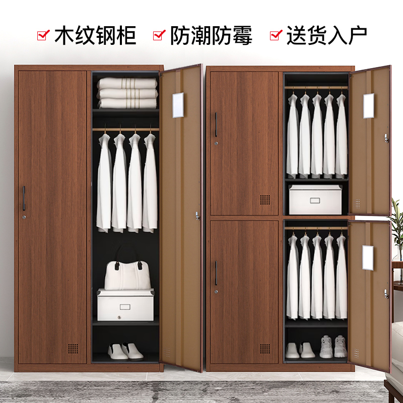 Iron locker staff cabinet dormitory storage cabinet gym six-door locker wood grain steel wardrobe with lock