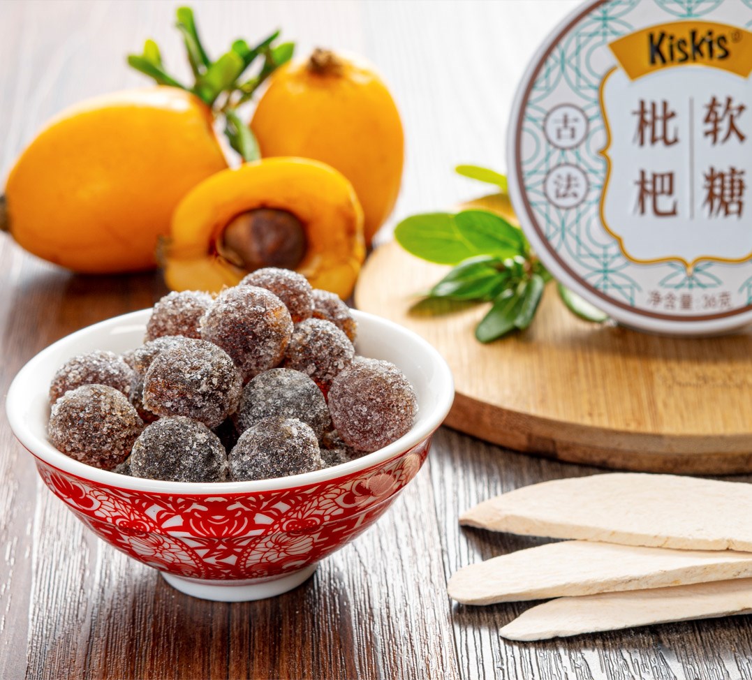 Cool nourishing KisKis loquat soft sugar ancient method to make moisturizing larynx mint sugar golden orange lemon casual snacks cool candy