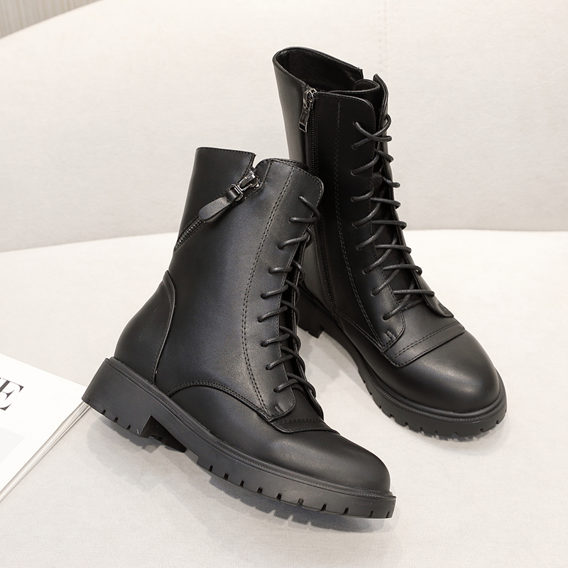 Jinte Belle thick heel Martin boots female British style short boots 2020 new leather lace-up thick bottom motorcycle boots