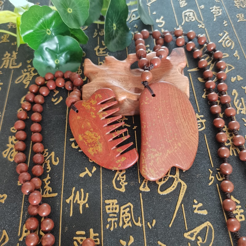 Natural Sibin Rich Red Bianstone Pendant Necklace Ping An Buckle Comb Hanging Rope Pieces of Health Care for Men and Women