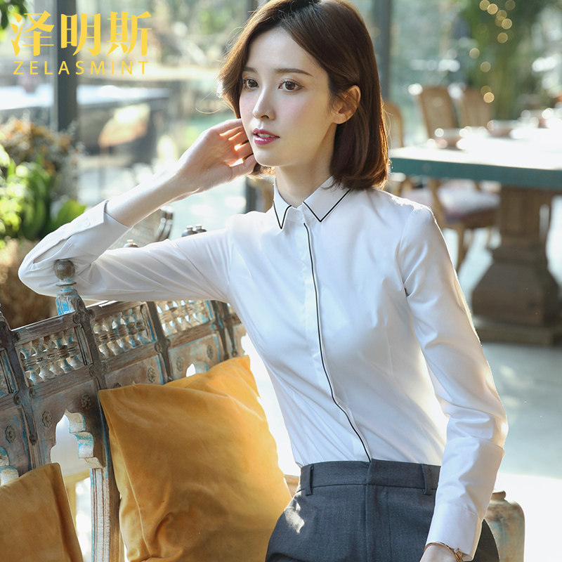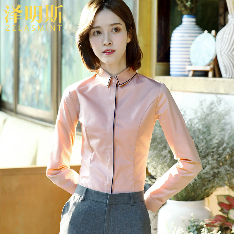 Zemmings pink career shirt woman long sleeve design sensation small crowdcommuter OL interview positive fitting work fixture lining clothes