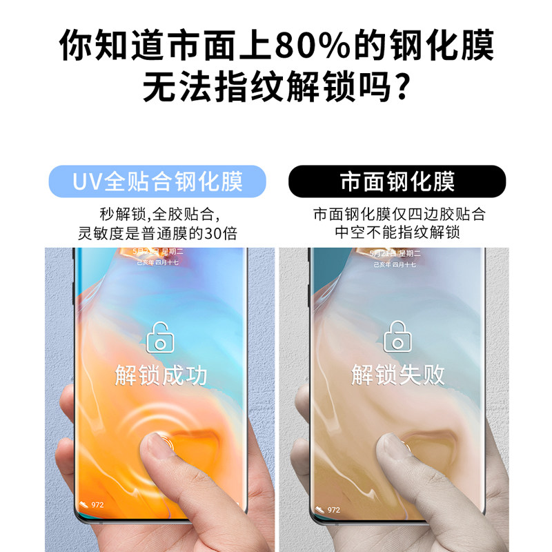 Suitable for Huawei p40pro tempered film uv full-glue p40por curved full-screen covered full-pack mobile phone film full-pack p40p 10 adsorption finishes without black edge full-fit p40pro