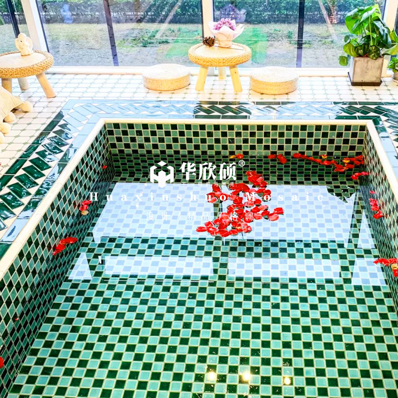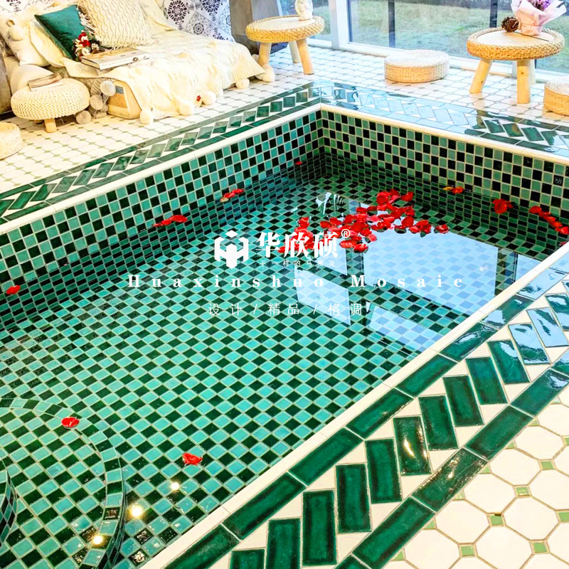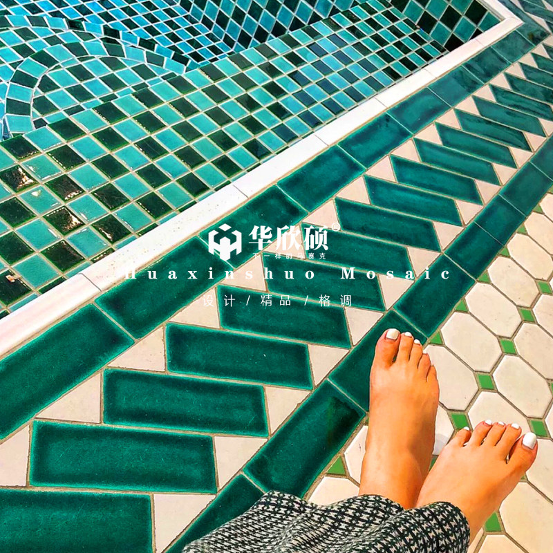 48 Moroccan ice crack green light blue 48 Moroccan ice crack green white ice crack support private letter logo custom octagonal white dot green mosaic Moroccan edge edging brick(60*2