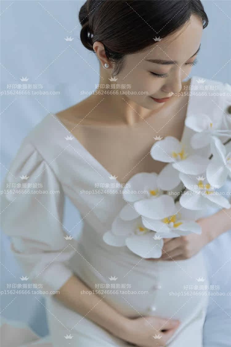 Maternity photography clothing new photo photo photo studio theme clothing beautiful pregnant mother white trailing ceremony dress