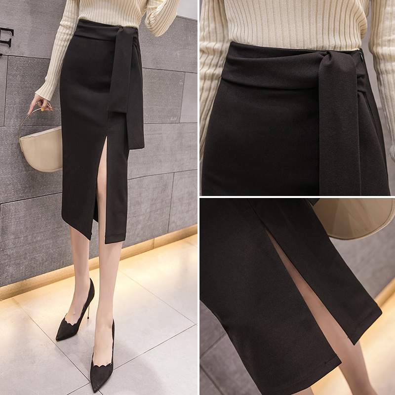 Tide Card Half Body Dress Woman 2022 New Fall Temperament Half Skirt Open Fork Professional Bag Dress Mid-Pack Hip Step Skirt