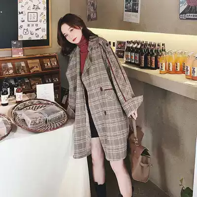 Lecea Alice Plaid retro coat 2021 autumn new fashion British wind medium and long version of the wind coat women