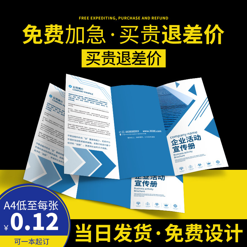 Publicity leaflet printing free design and production custom-made double-sided color page picture album printing enterprise advertisement brochure poster manual printing a4a5 paper custom three fold small batch dm single page