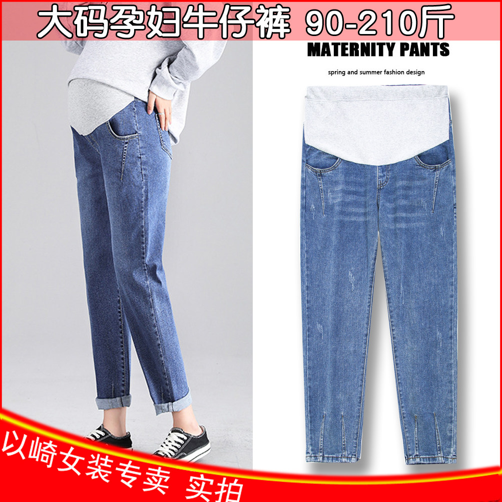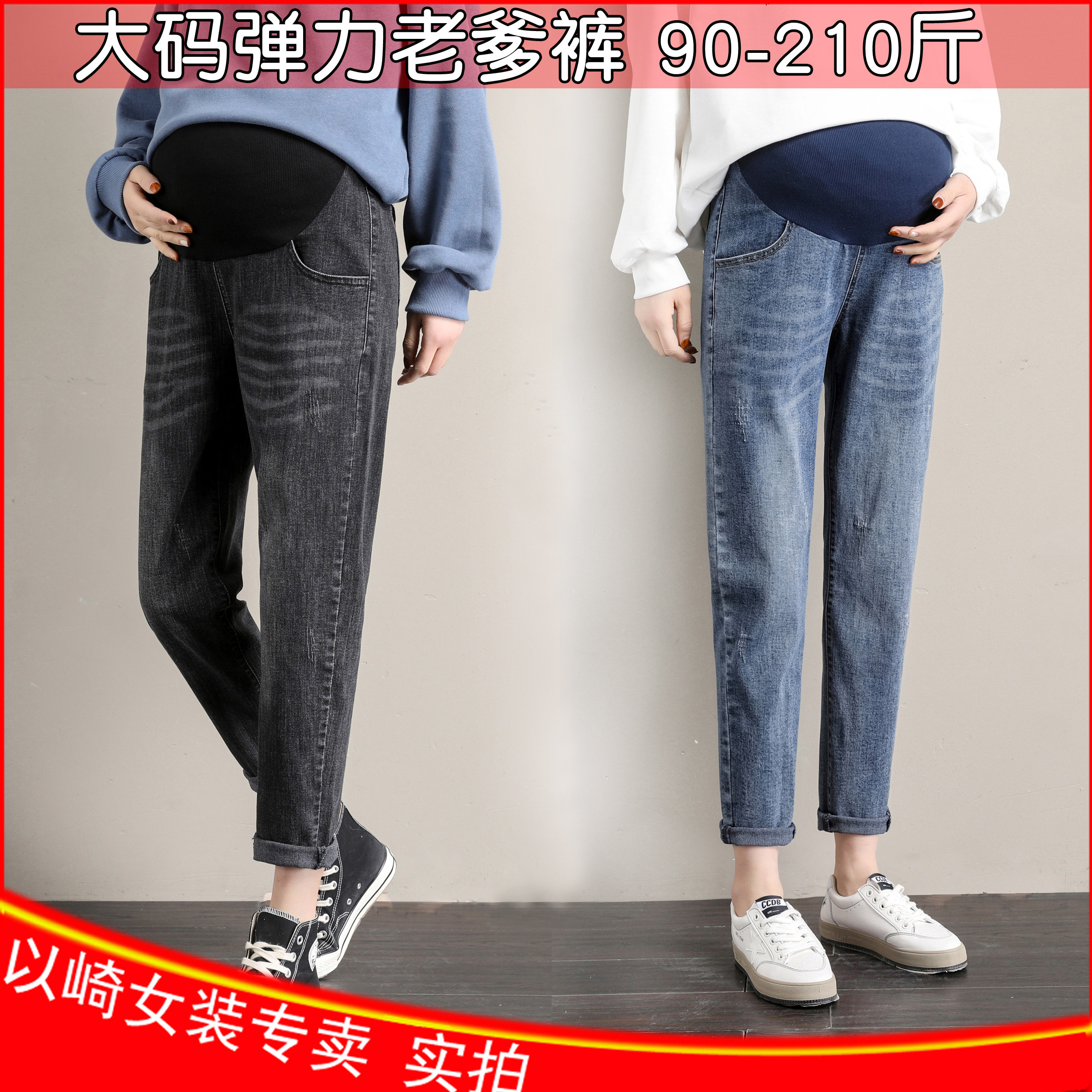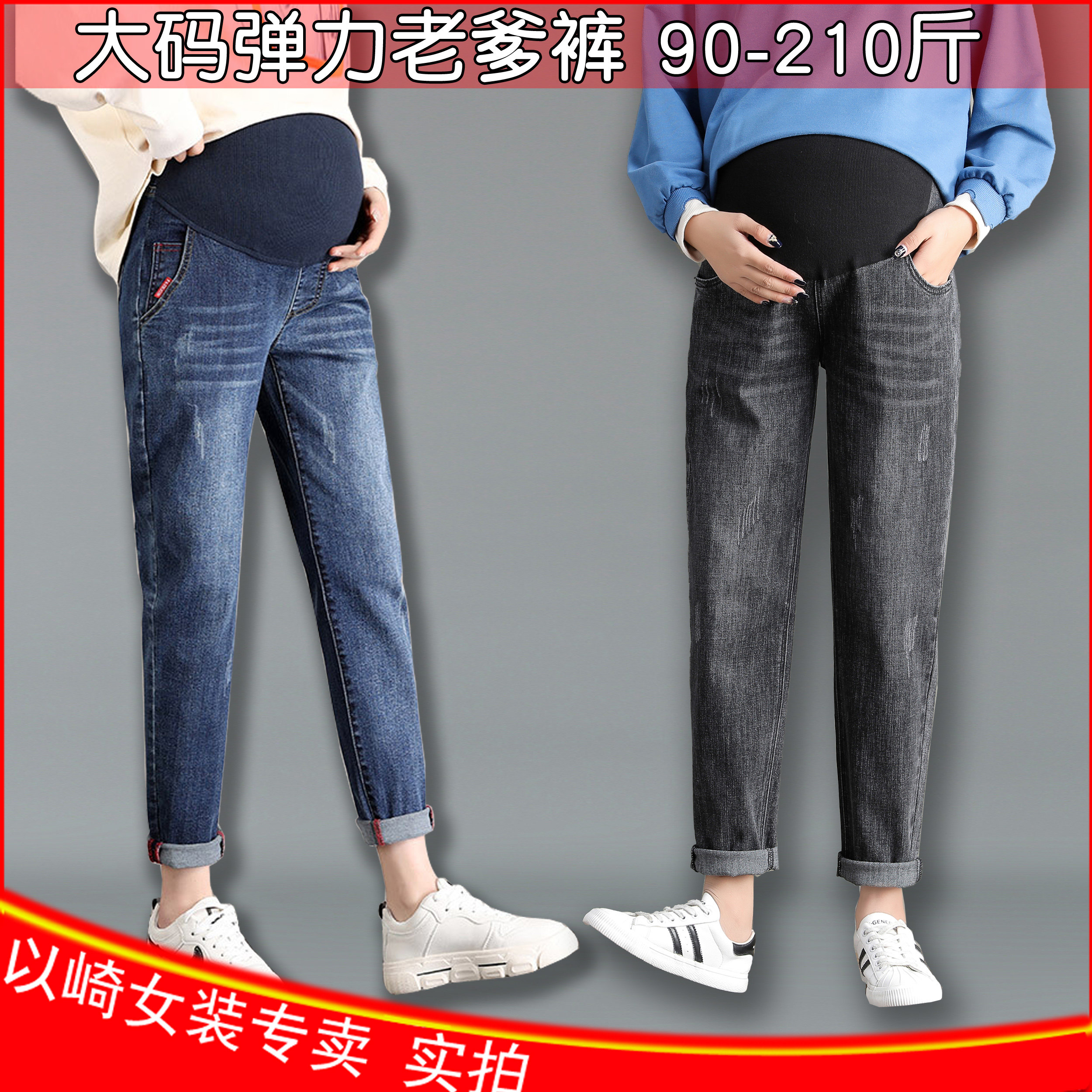 Plus hypertrophy size pregnant woman old daddy pants spring autumn season easy summer style long pants outside wearing jeans expats slim 200 catty