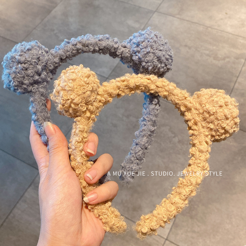 Bear ears hair band female wild out to wash face plush cute Korean ins net red lamb hair autumn and winter hair band