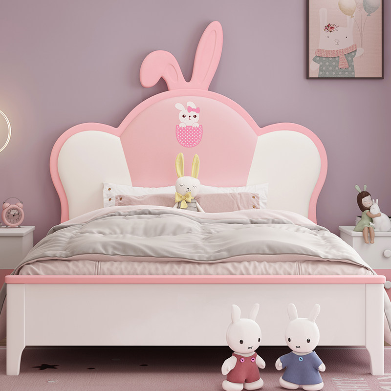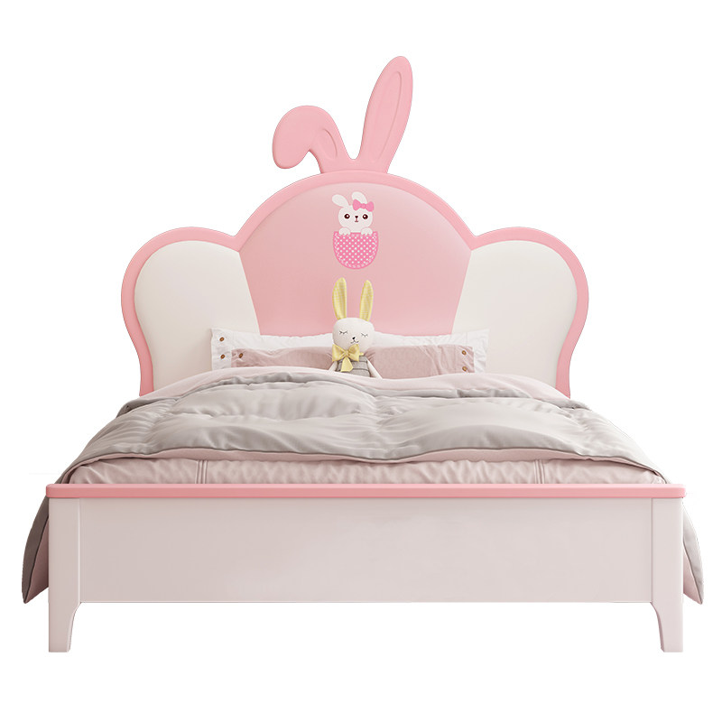 Nordic rabbit bed girl ins wind net red solid wood children's bed cute pink girl princess dream with guardrail