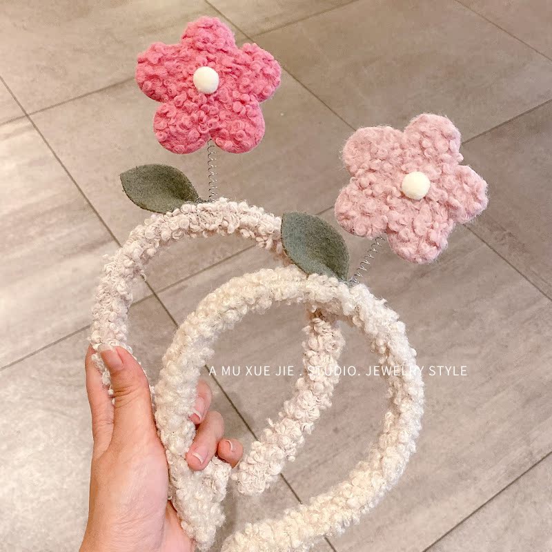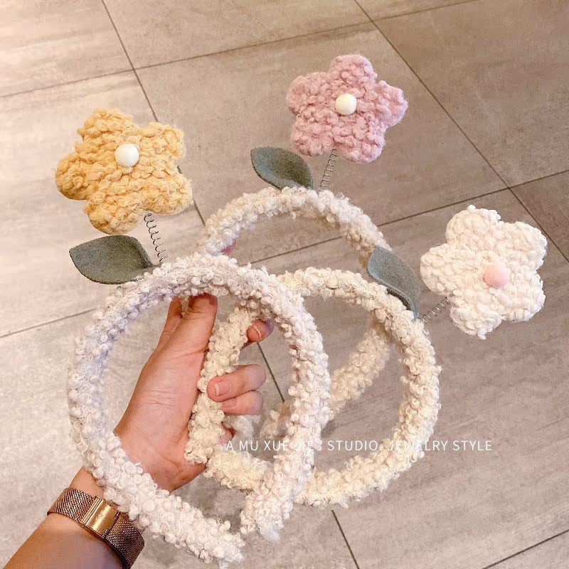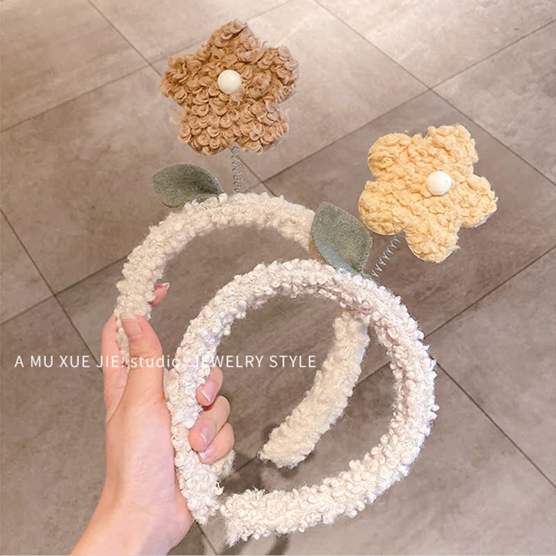 ins creative lamb plush flower hair band female net red face wash hair band cute wild out hair bundle hair band