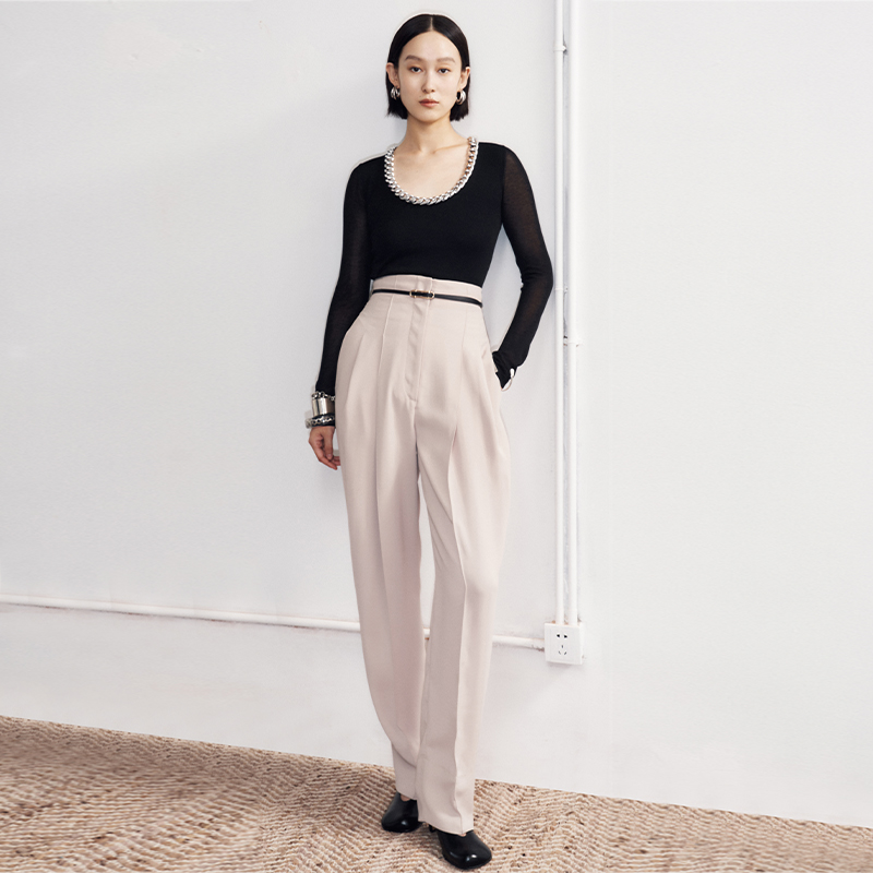 MADEINAM2020 Early Autumn New Set Dyeing Seagull Grey Pant Pendant Wide Leggings Pants Head Layer Bull Leather Fine Leather Strap