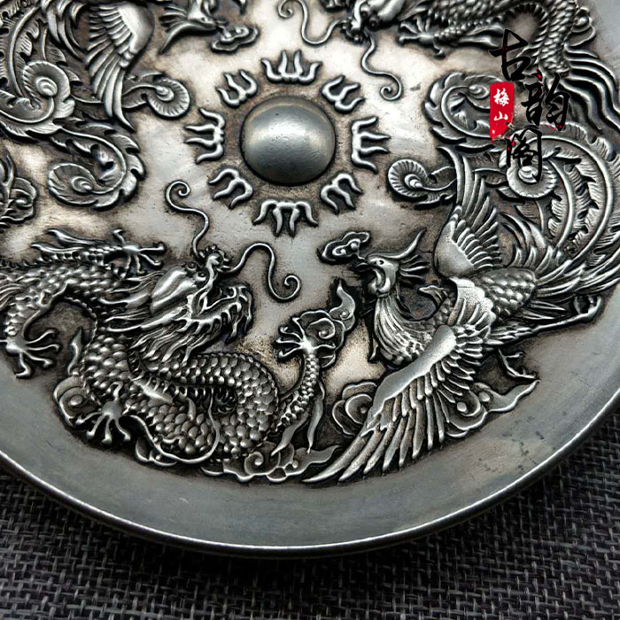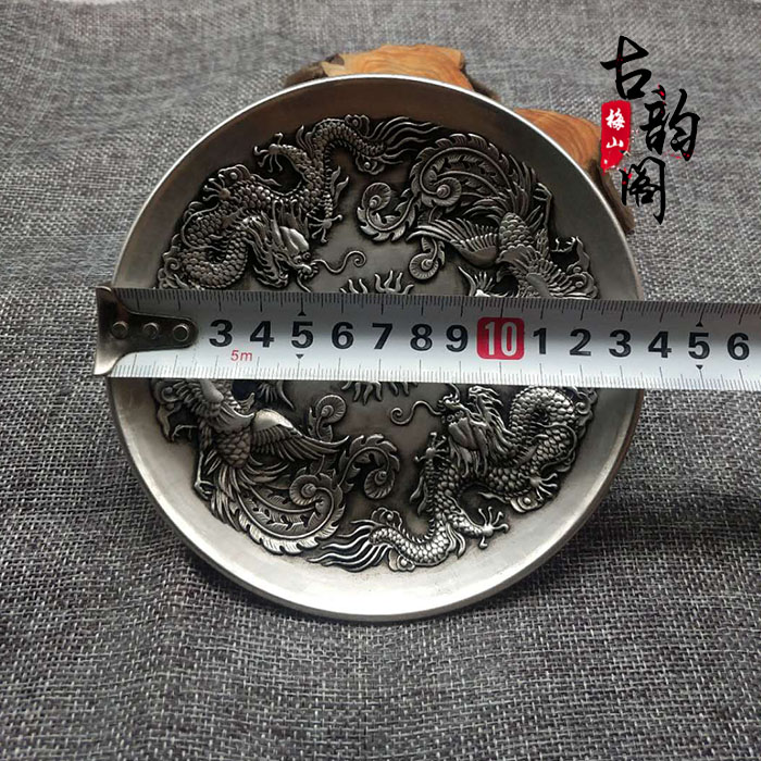 Ancient Play Antique Bronze Ware Collection White Brass silver Longfeng Feng presents an auspicious bronze plate imitation ancient white silver disc subtext room swing piece