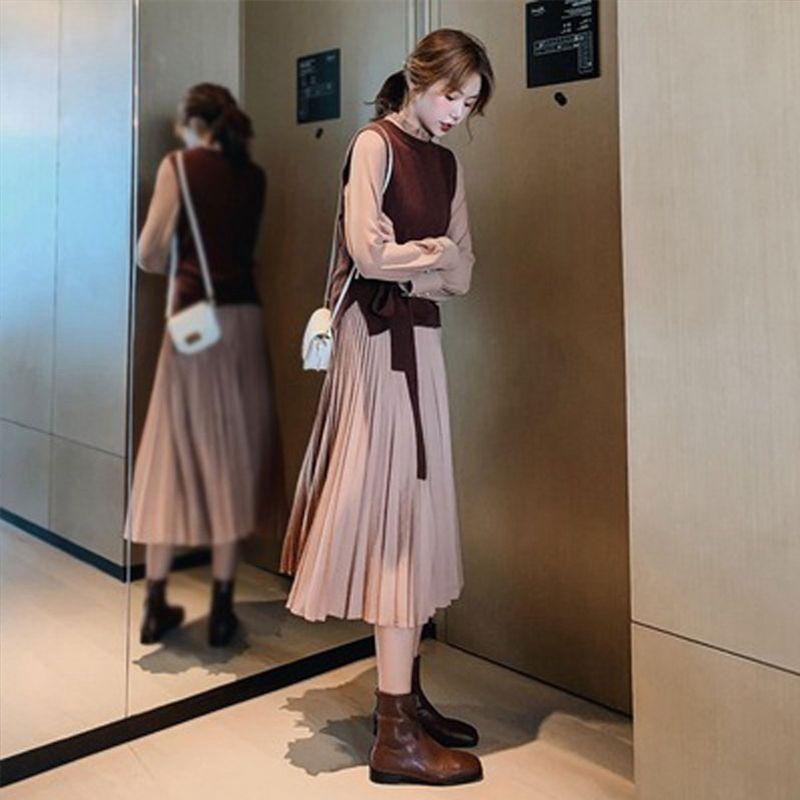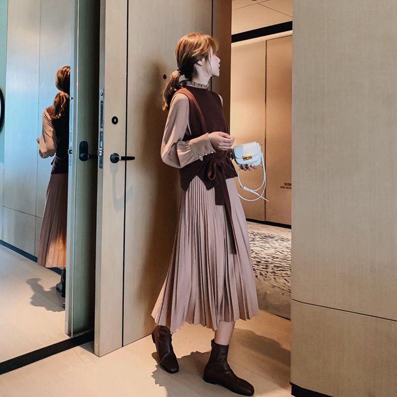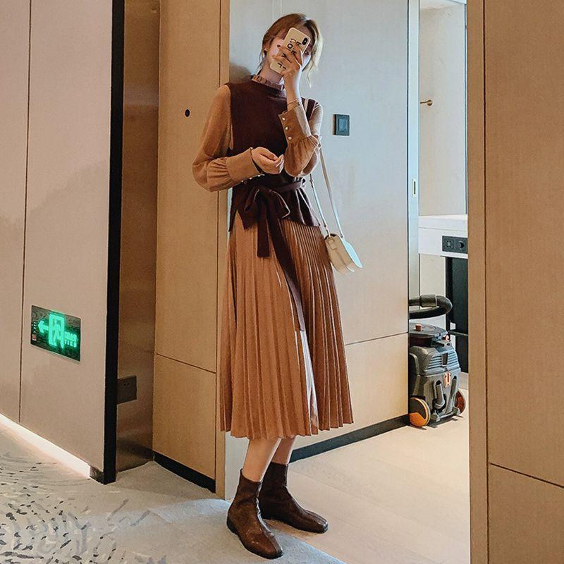 Lecea Alice's Infinite Possibilities of Beautiful Skirts ~ Knock Beauty Long-sleeved dress pleated skirt two-piece set