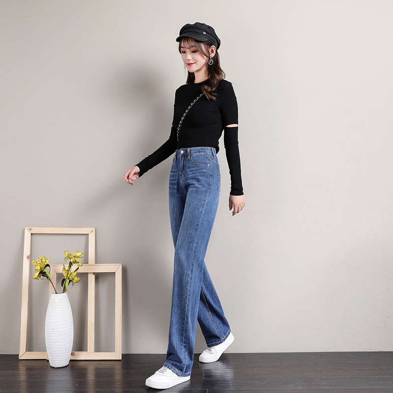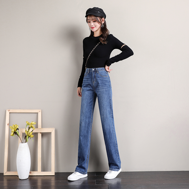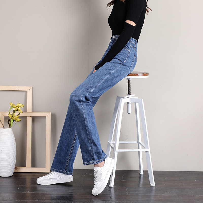 Jeans woman high waist display slim loose straight cylinder 2022 new exploits small sub-display high spring autumn small broadleg pants