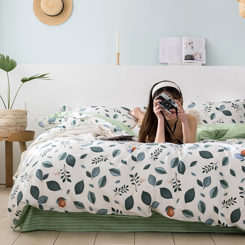 Bed four-piece set Summer 100 cotton cotton double small fresh student dormitory single bed three-piece bed set