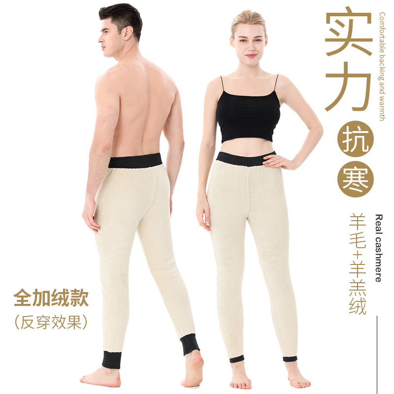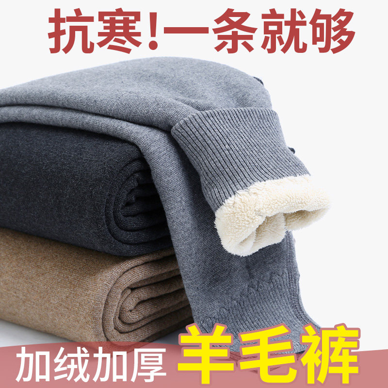 Winter men's wool pants thickened warm pants high-waist bottoming cashmere pants women's middle-aged and elderly wool pants plus velvet cotton pants