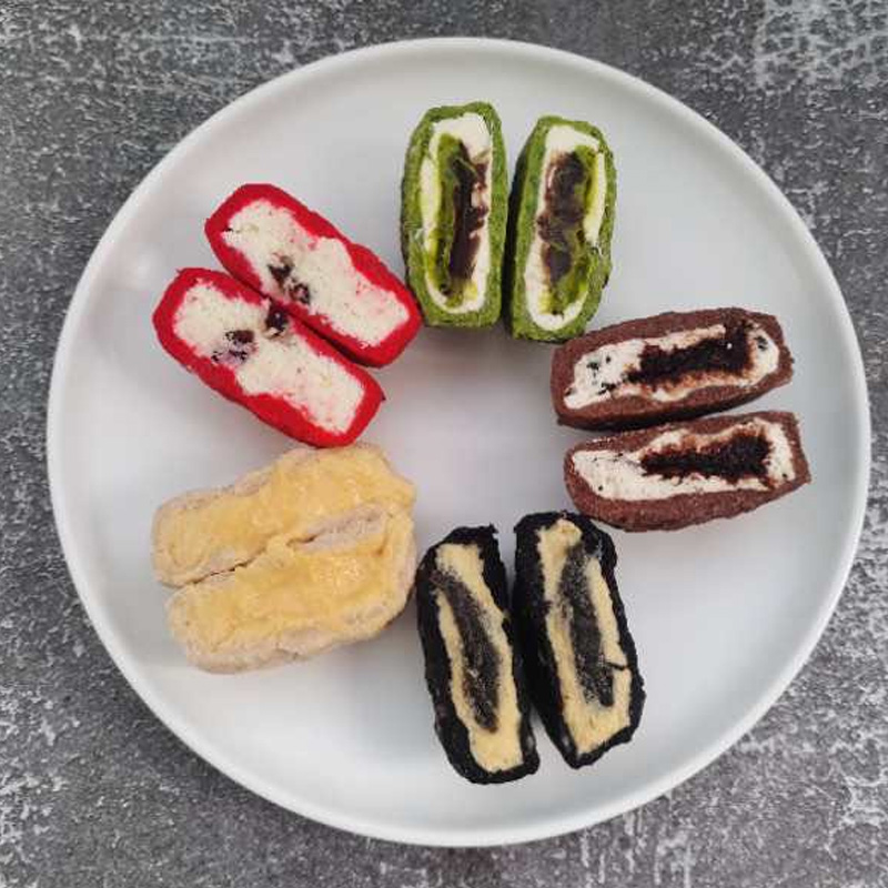Matcha Chocolate Sauce Cheese 55g 1 Red Velvet Coconut Cheese Cranberry 55g 1 Black Golden Custard Black Sesame Cream 55g 1 Chocolate Hazelnut Sauce Cheese 55g 1 Custard Mooncake