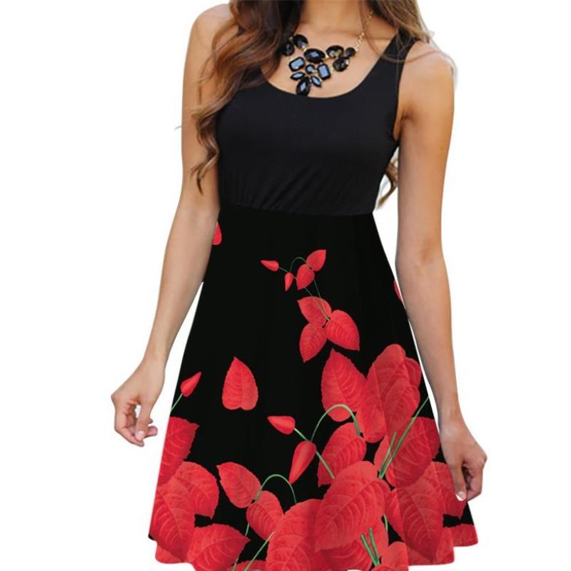 Ms - 5 sleeveless round collar diital print dress female