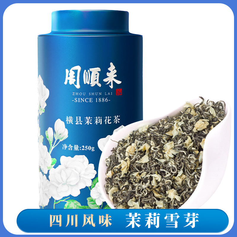 Zhou Shunlai 2021 New tea Fragrant Jasmine tea Fresh Jasmine Snow Bud Sichuan flavor Snowflake Tea 250g