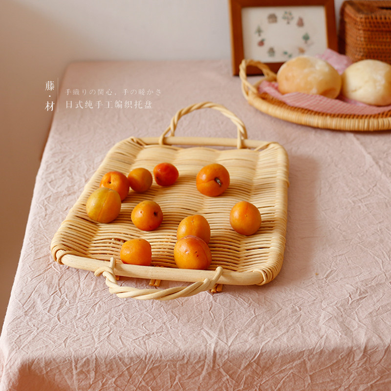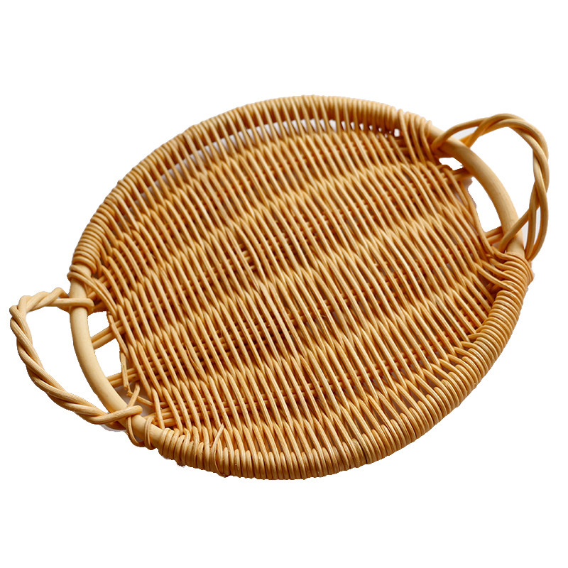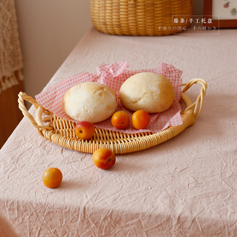 Simple -- Japan-style Indonesian white rattan material woven flat tray sweet bread containing pan gourmet baking background tray