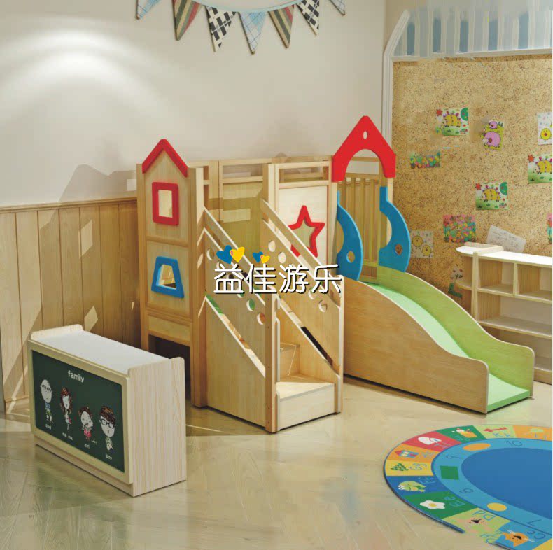 Nursery Children's indoor slide Multi-functional area corner wood slide ladder Early teaching parent-child Paradise Slide Toy