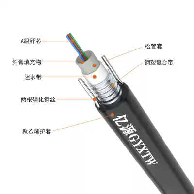 Yiyuan GYXTW-4B1 3 center bundle tube armored 6mm four-core outdoor single-mode optical cable 2 core 6 core 8 core 12 core telecom optical fiber cable 6mm 4 core telecommunication network optical cable