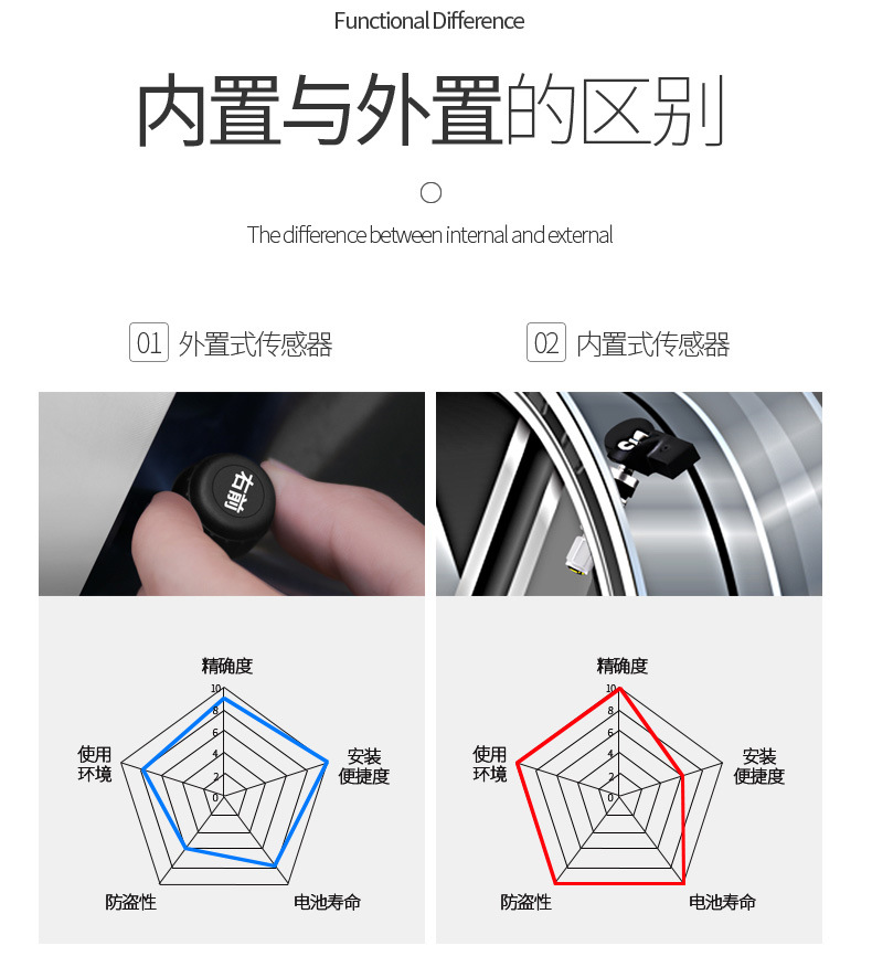 Tire pressure monitor external with built-in car tire detector wireless solar tire pressure concealed high precision-Taobao