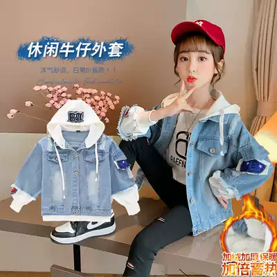 Girls denim coat spring and autumn 2021 new children Foreign style jacket girl Korean Net Red little girl children's clothing