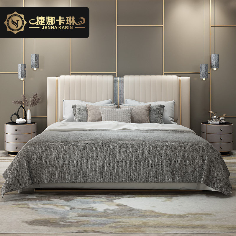 Italian light luxury simple atmosphere leather bed bedroom leather soft bag bed post-modern master bedroom luxury double solid wood bed