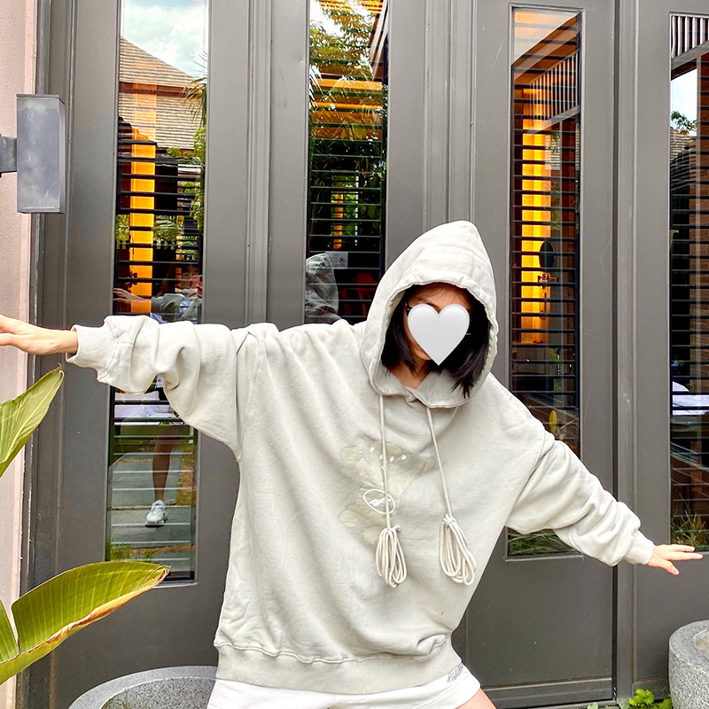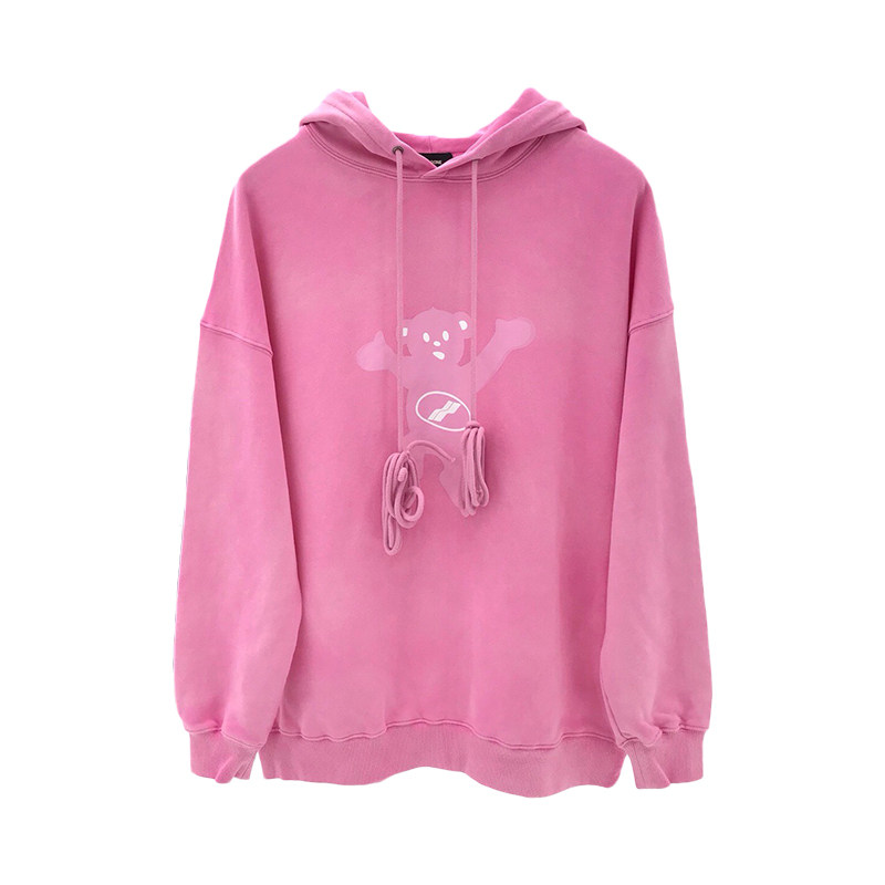 2020 new experience we11done Loose Pink Little Bear Printed Even Cap Sports Shirts Plus velvet well for men and women autumn and winter