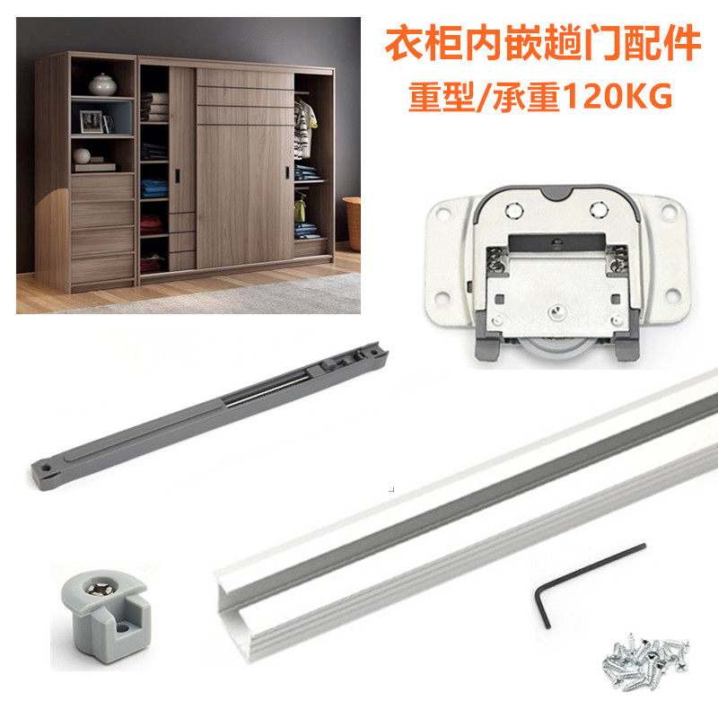 Wardrobe decoration cabinet invisible built-in sliding door track bookcase TV cabinet sliding door accessories sliding door external hanging mute slide