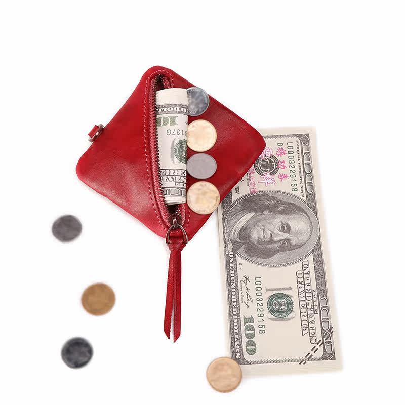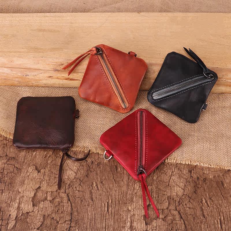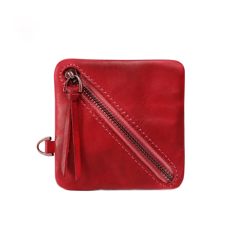 Retro women's bag leather fashion simple small wallet vegetable tanned leather zipper coin purse multi-functional storage bag 2020 new