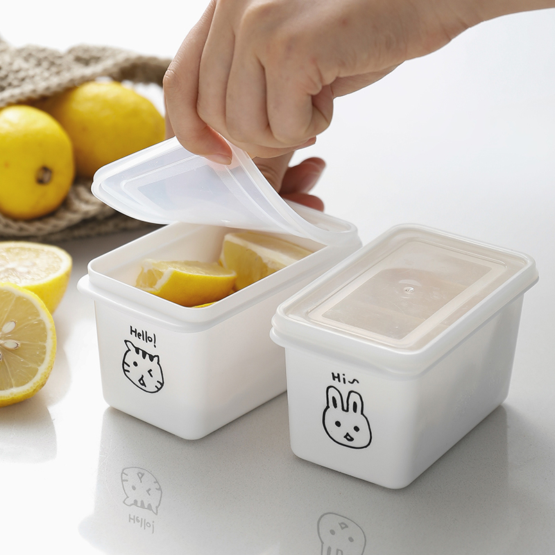 Food preservation box Plastic with lid sealed box Fruit box Cute Deputy Food Box Kitchen Fridge Containing box 2 in