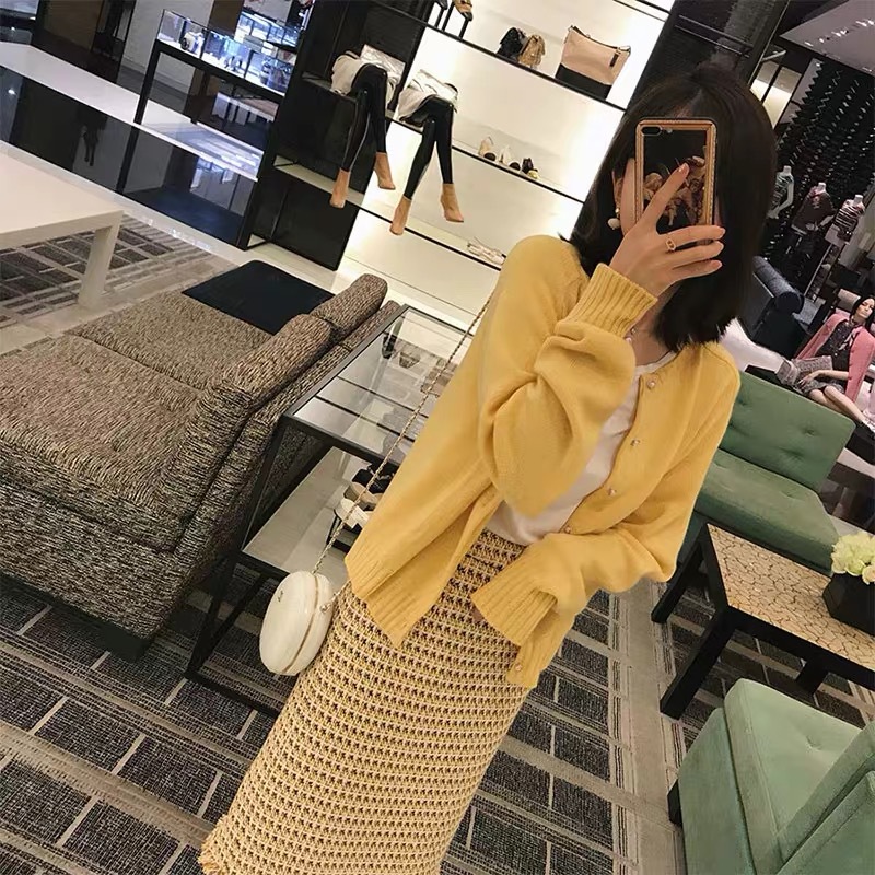Yellow Cardigan Skirt Suit Pink Cardigan Skirt Suit Pink Single Cardigan Yellow Single Cardigan Yellow Single Skirt Apricot Single Skirt