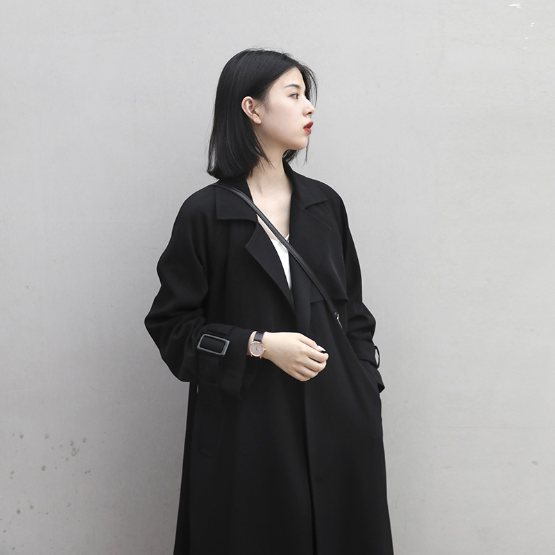 English style temperament windbreaker coat female 2021 Spring and Autumn New Long Version small man Korean version loose design sense