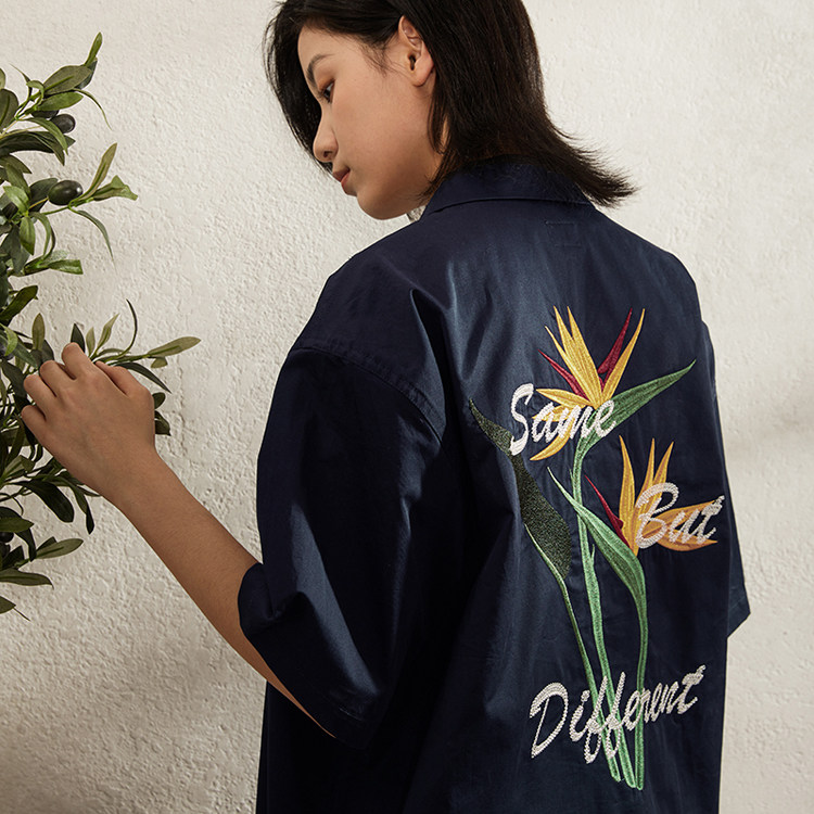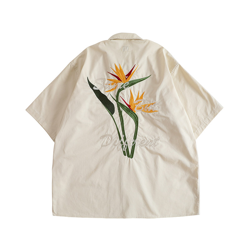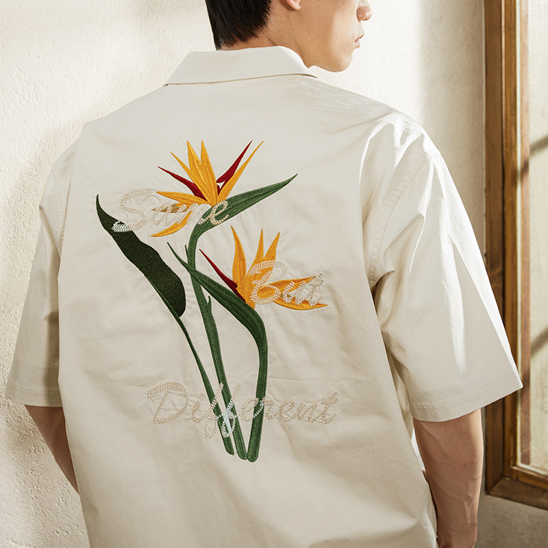 "Exclusive for Good Things Experience" LR MADE Bird of Paradise Flower Theme Embroidered Cuban Collar Shirt Customers do not shoot