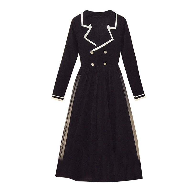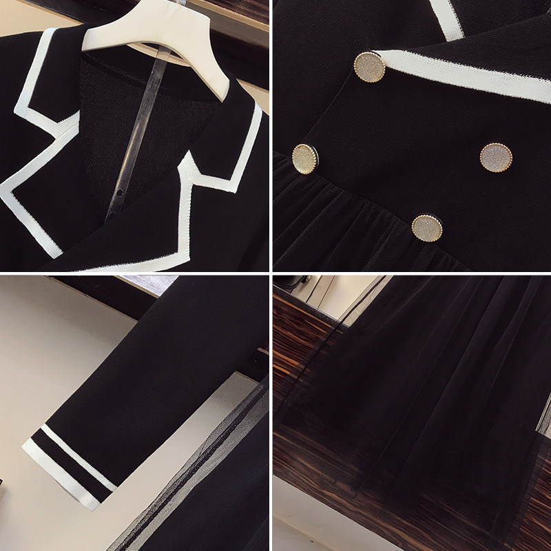 Qiao Meixi large size women's clothing 2022 spring and autumn clothing mesh stitching over-the-knee knitted slim small fragrance maternity dress