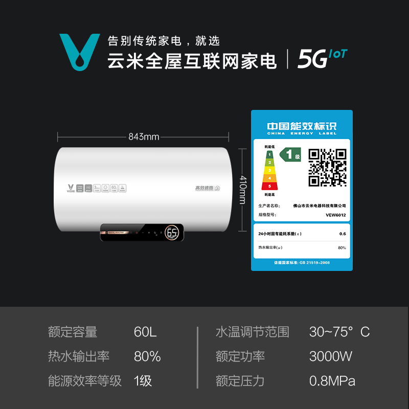 Yunmi Internet electric water heater C1 household water storage type 60L liter energy-saving fast heat VEW6012 mobile phone APP
