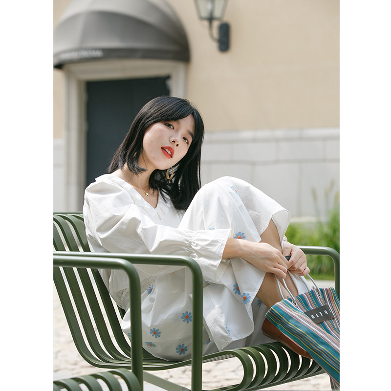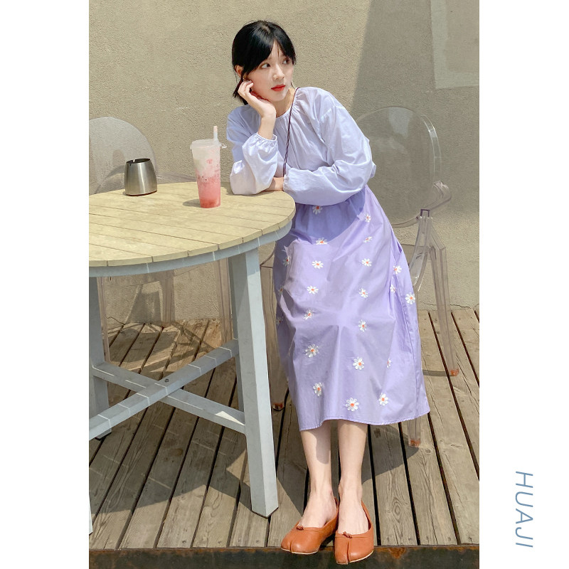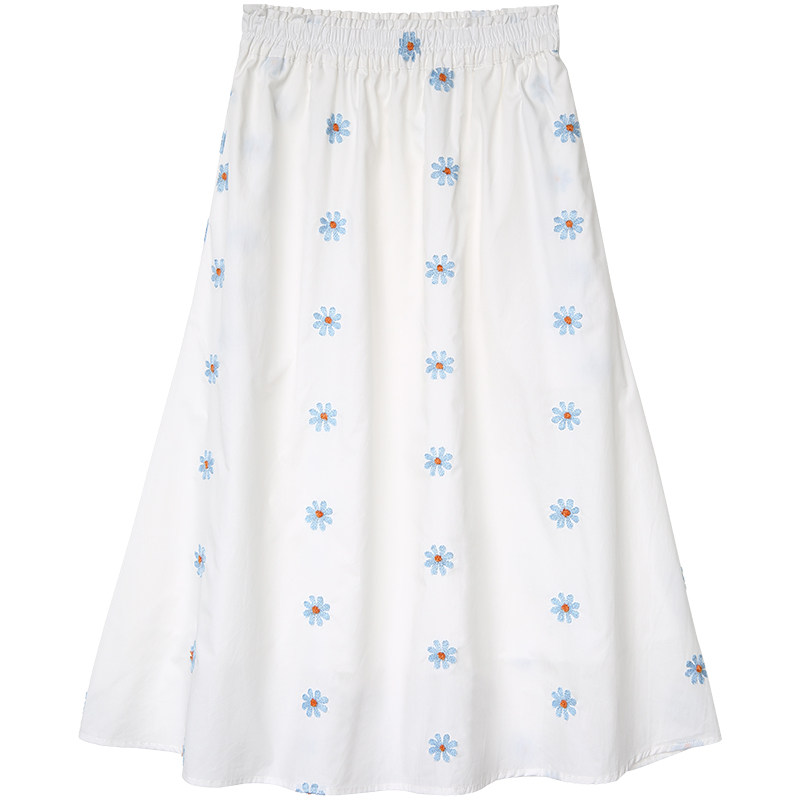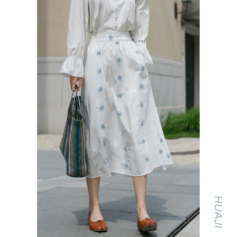 Huaji Q155 White Flower Embroidered Cotton Elastic Waist Covering Hip Skirt A-Line Skirt Mid-Length Gentle Short Skirt
